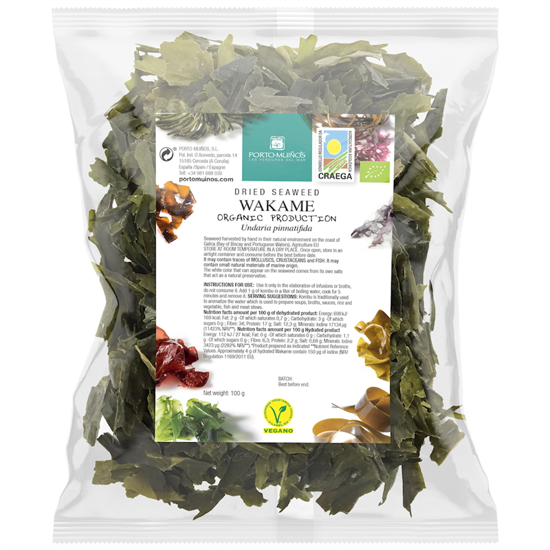 ALGI MORSKIE SUSZONE - WAKAME BIO 100 g (TOREBKA FOLIOWA) - PORTO MUINOS
