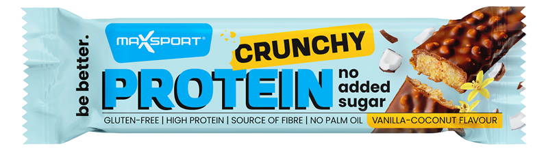 BATON PROTEINOWY CRUNCHY O SMAKU KOKOSA I WANILII W CZEKOLADZIE MLECZNEJ BEZ DODATKU CUKRÓW BEZGLUTENOWY 40 g - MAXSPORT