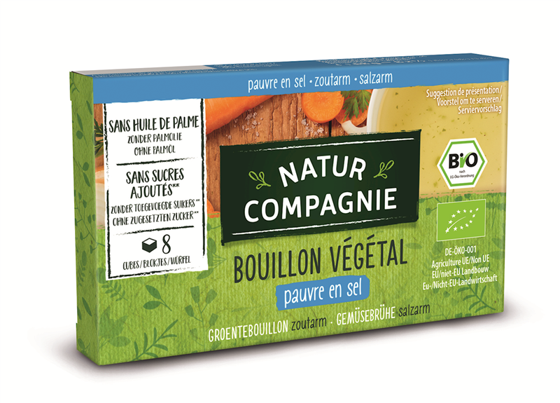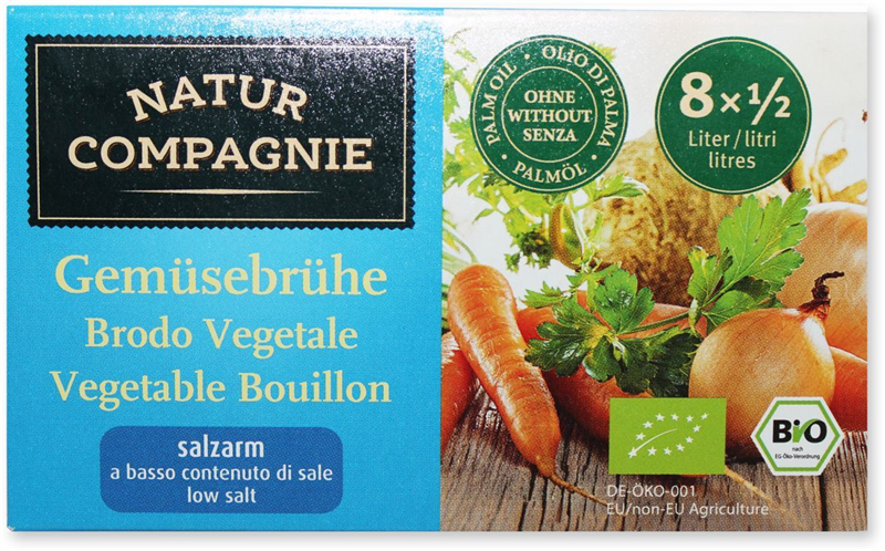 BULION - KOSTKI WARZYWNE BEZ DODATKU CUKRÓW O NISKIEJ ZAWARTOŚCI SOLI BIO (8 x 8,5 g) 68 g - NATUR COMPAGNIE