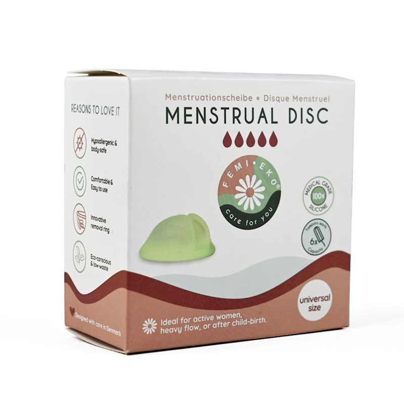 - Jeśli masz objawy lęku menstruacyjnego - menofobii, zalecamy użycie uniwersalnego aplikatora Femi.Eko do zakładania i wyjmowania dysku menstruacyjnego, aby ułatwić i ograniczyć kontakt z płynem menstruacyjnym.