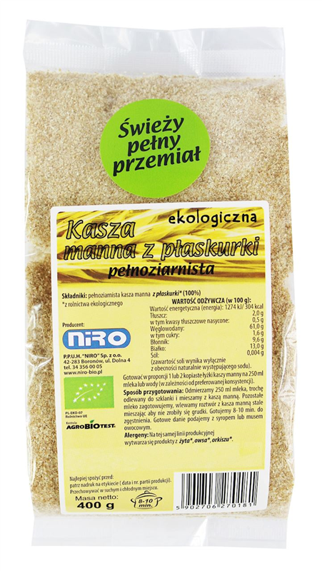 KASZA MANNA Z PŁASKURKI BIO 400 g - NIRO