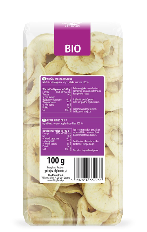 KRĄŻKI JABŁKA SUSZONE BIO 100 g - BIO PLANET