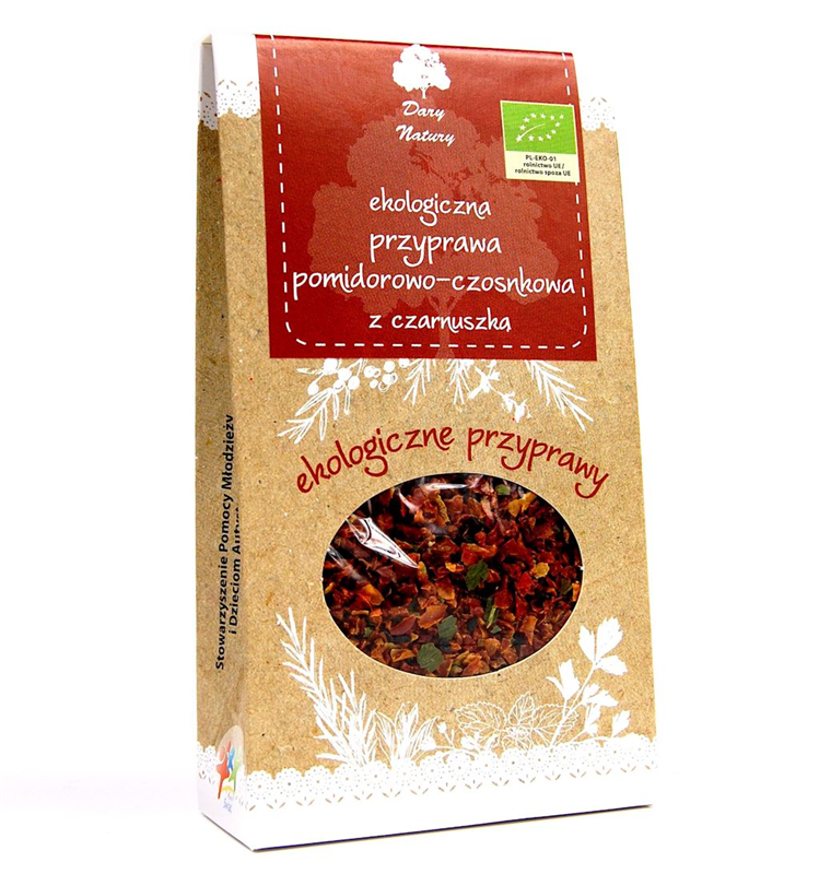 PRZYPRAWA POMIDOROWO - CZOSNKOWA Z CZARNUSZKĄ BIO 40 g - DARY NATURY