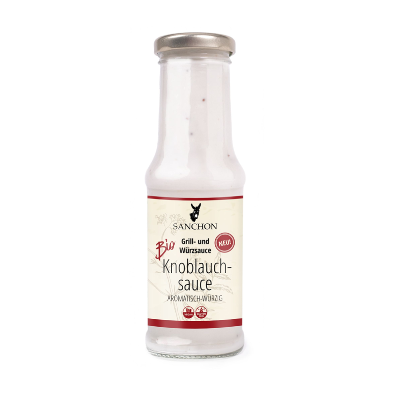 Wegański sos czosnkowy SANCHON – pikantny, kremowy i pełen smaku! Doprawiony drobnymi ziarnami GORCZYCY, doskonale nadaje się do grillowanych potraw, warzyw lub jako dip. Intensywne doznania smakowe dla wszystkich miłośników czosnku.